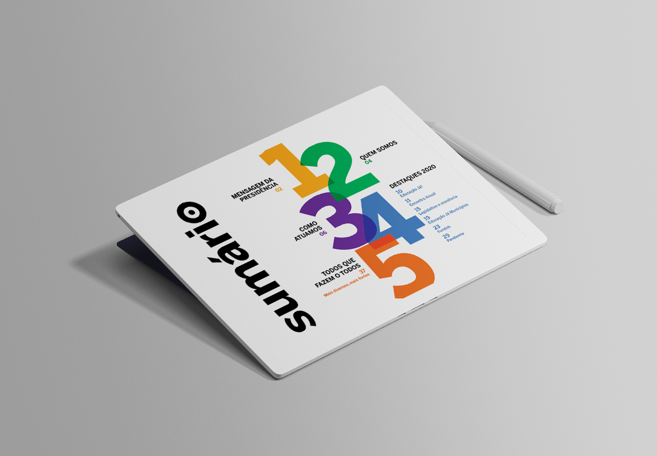 Graphic design, art direction, and layout of the 2020 Activity Report for Todos pela Educação