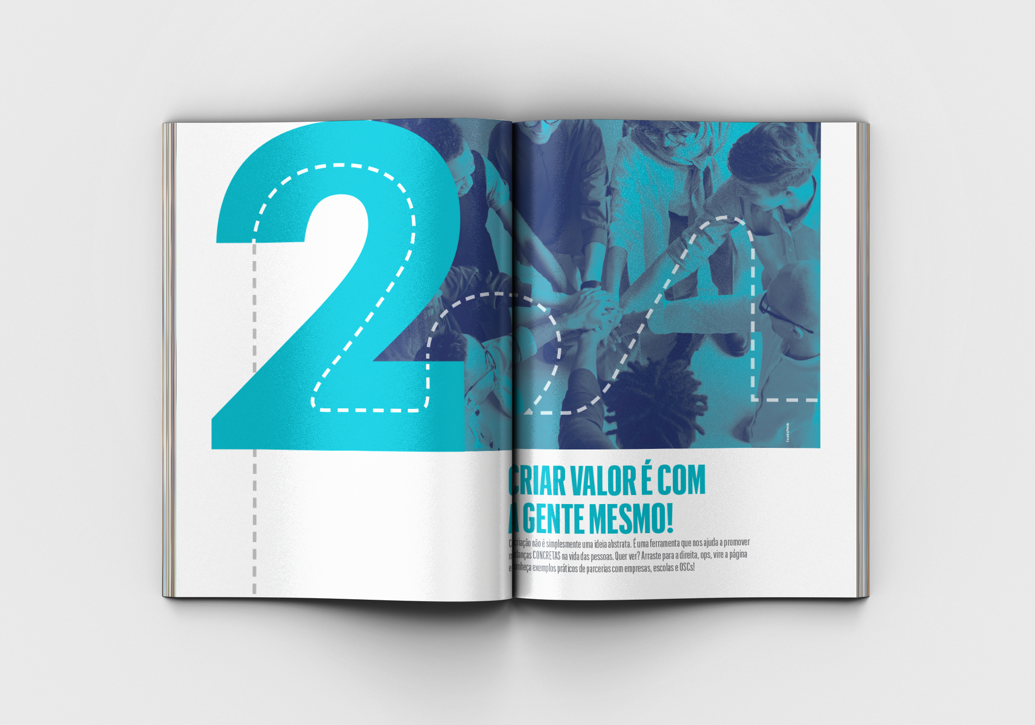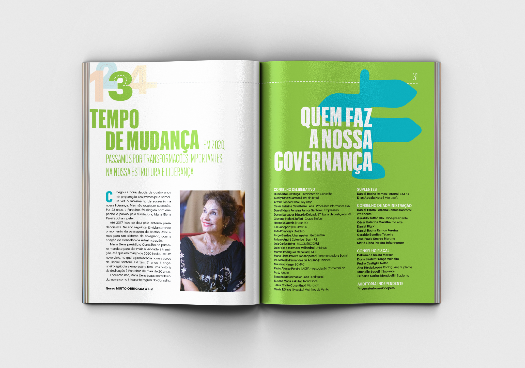 Graphic design, art direction, and layout of the 2020 Annual Report of Parceiros Voluntários.